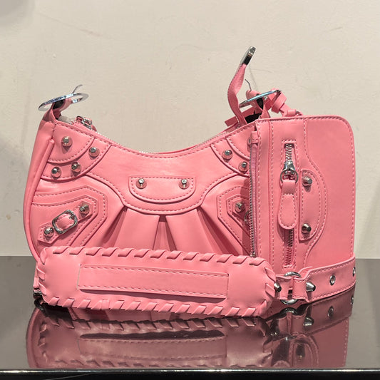 Stud Trim Leather Bag w/ Pouch