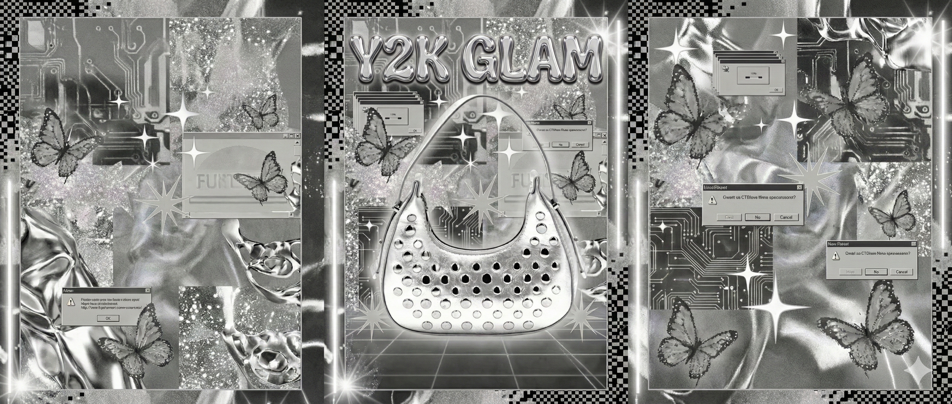 Metallic Silver Studded Mini Hobo Bag - Y2K Edgy Punk Style - Silver