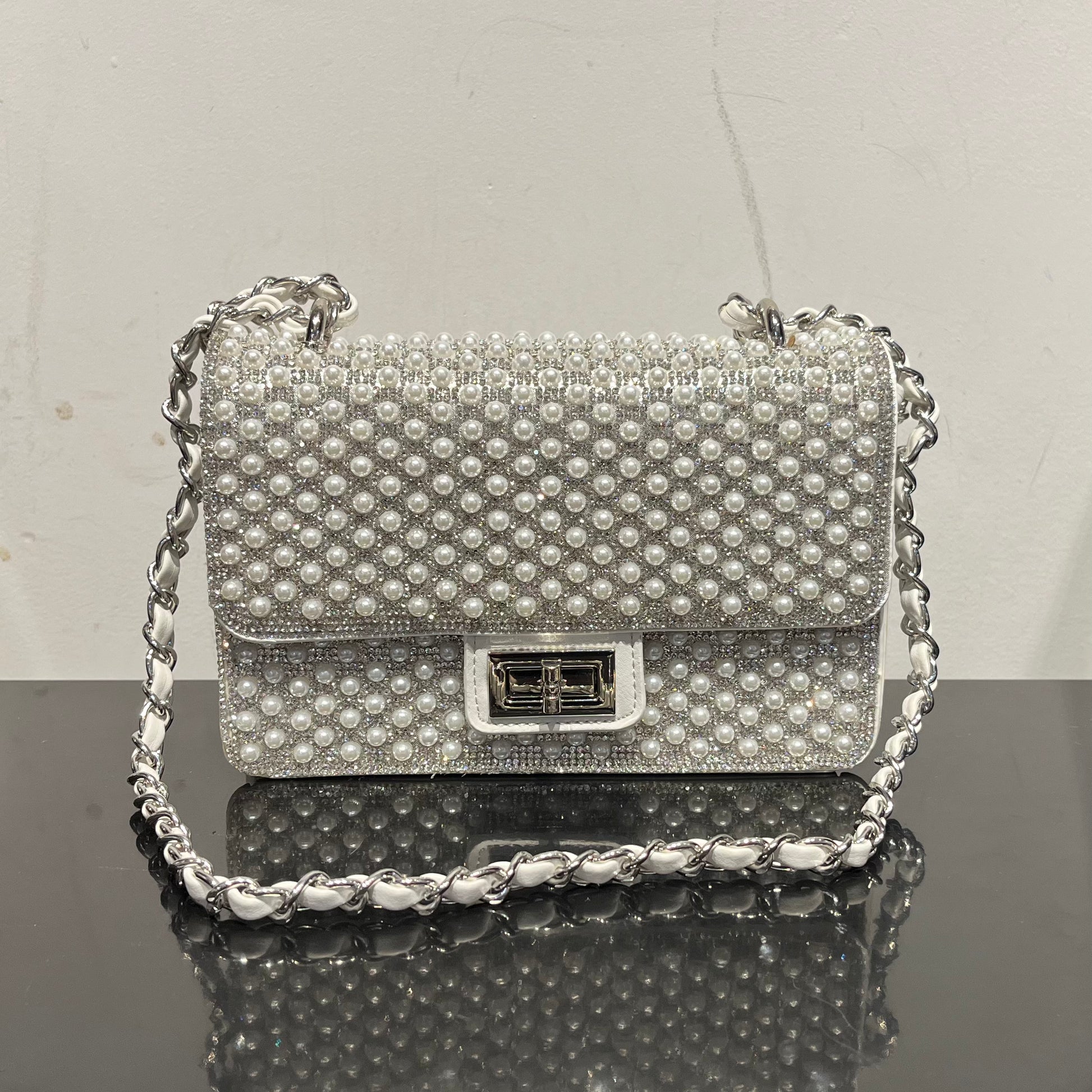 Indulge in the timeless elegance of our Faux Pearl Rhinestone Bag. With its intricate design of faux pearls and rhinestones, this bag exudes luxury and sophistication. Perfect for a night out or special occasion, it adds the perfect touch of glamour to any outfit. Elevate your style with this exquisite accessory.